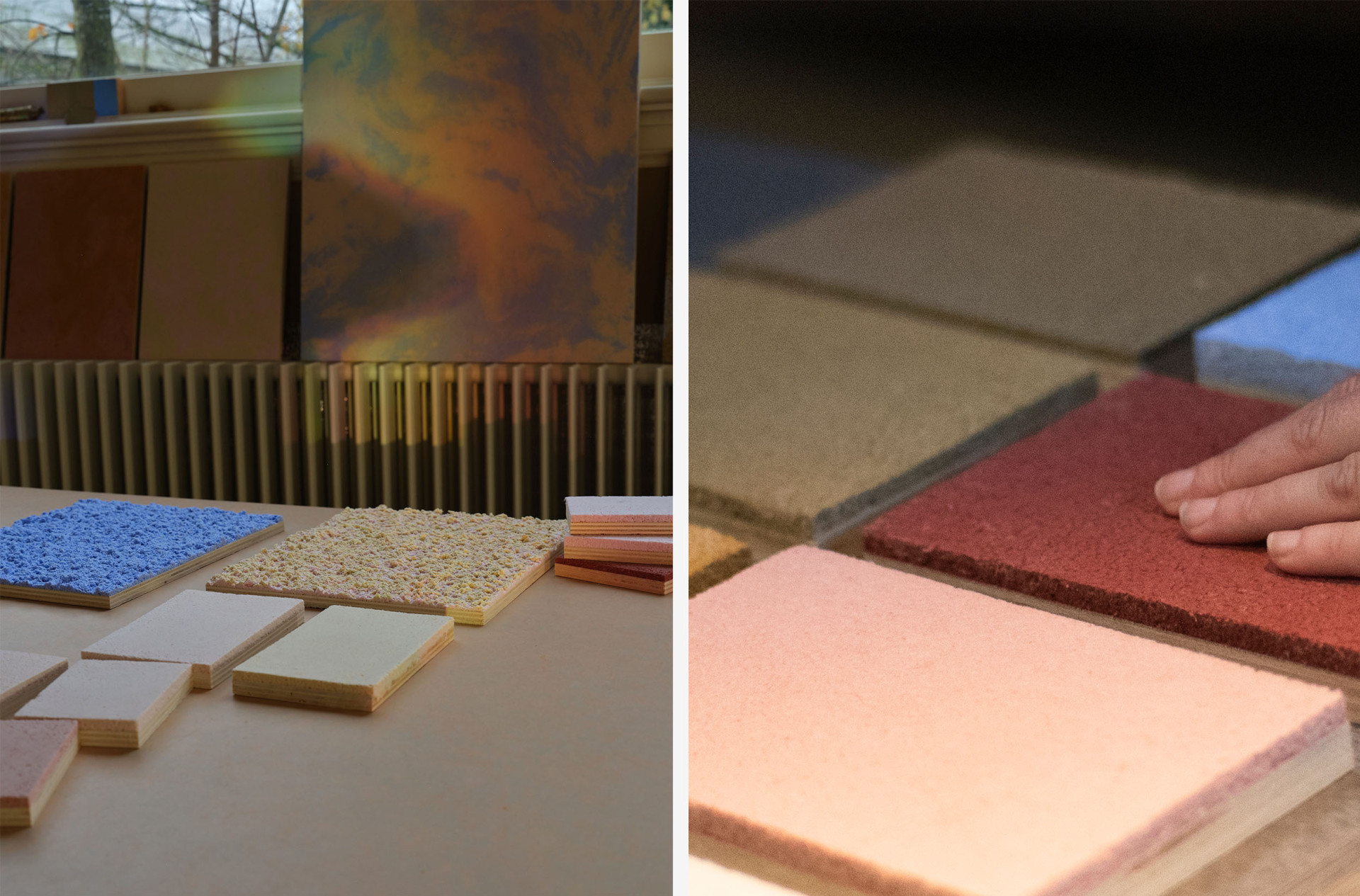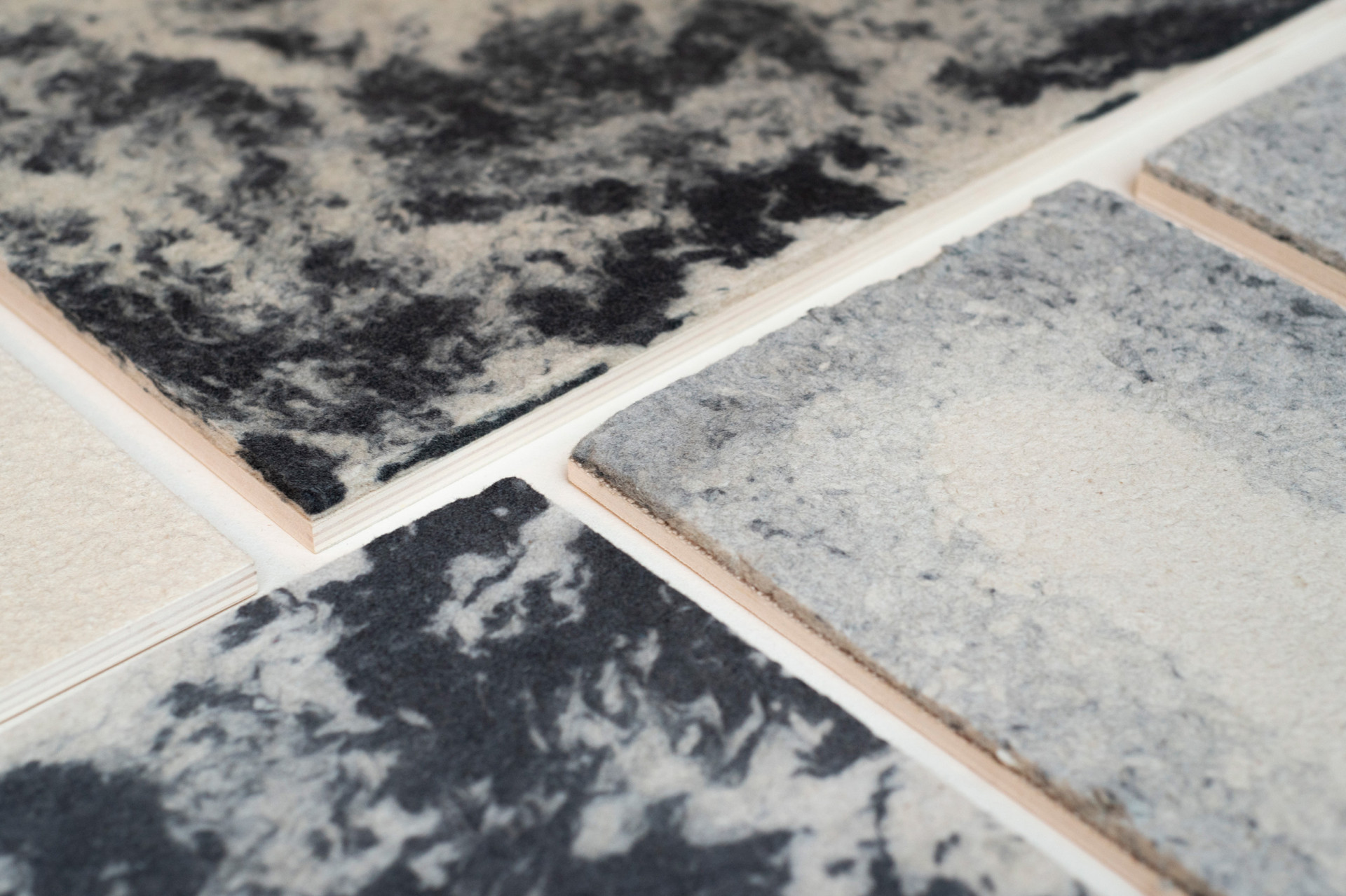 Currently, Fibre Walls offers three main varieties: Wool Stucco, Cotton Stucco, and Cotton Spray. Each variety has unique characteristics and appearances, providing a range of options to suit different aesthetic preferences and functional needs. The Wool Stucco has already been successfully applied in notable projects, including a bespoke wall installation for the Willibrordus Church in Haringhuizen and as part of the ReThink project with Kvadrat, where we used the largest waste stream from their textile production.