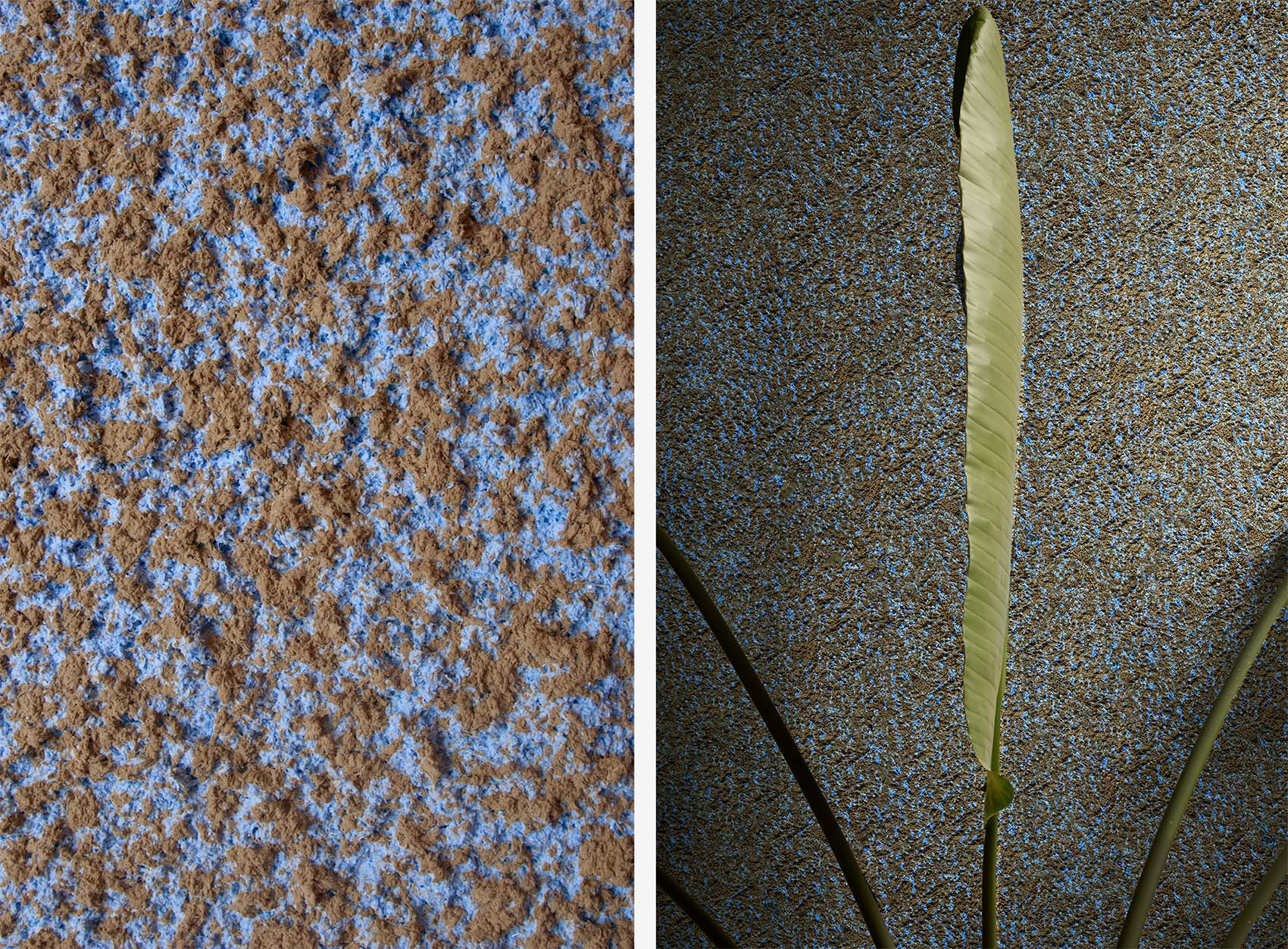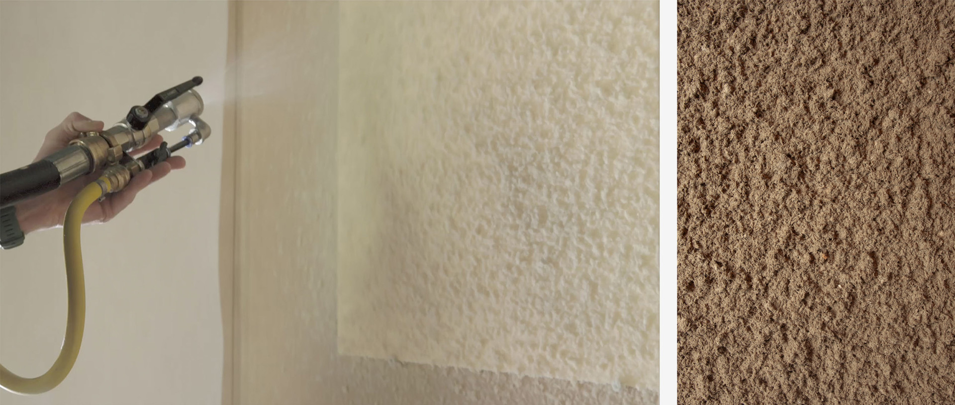 Fibre Walls Collection# forms part of our Living Textures research, where we explore new ways to reimagine walls by applying textile textures. The outcome of this research is a fully circular, sustainable wall and ceiling stucco material, that has high quality insulating and acoustic properties but also enhances the aesthetic value of the interior.